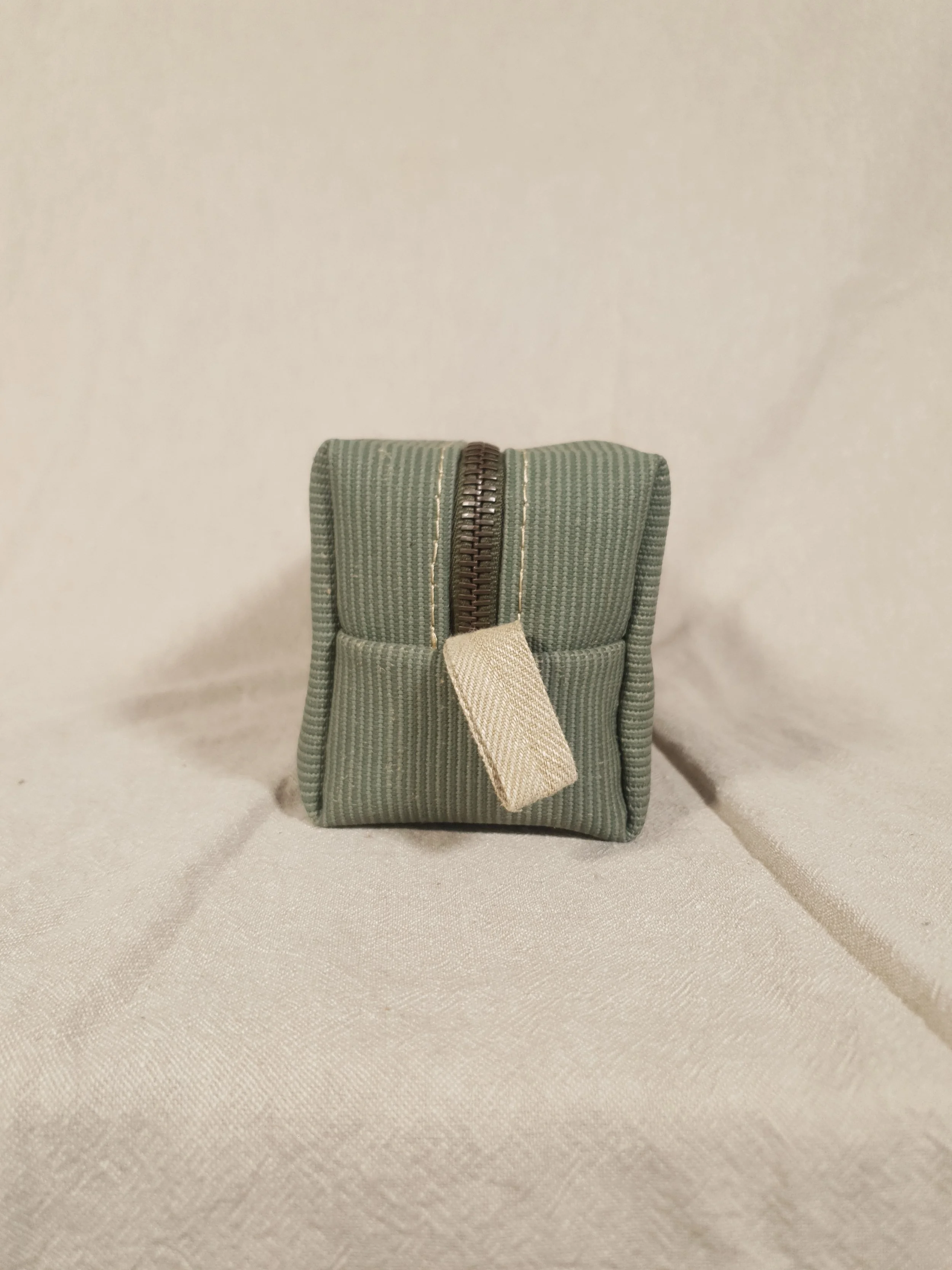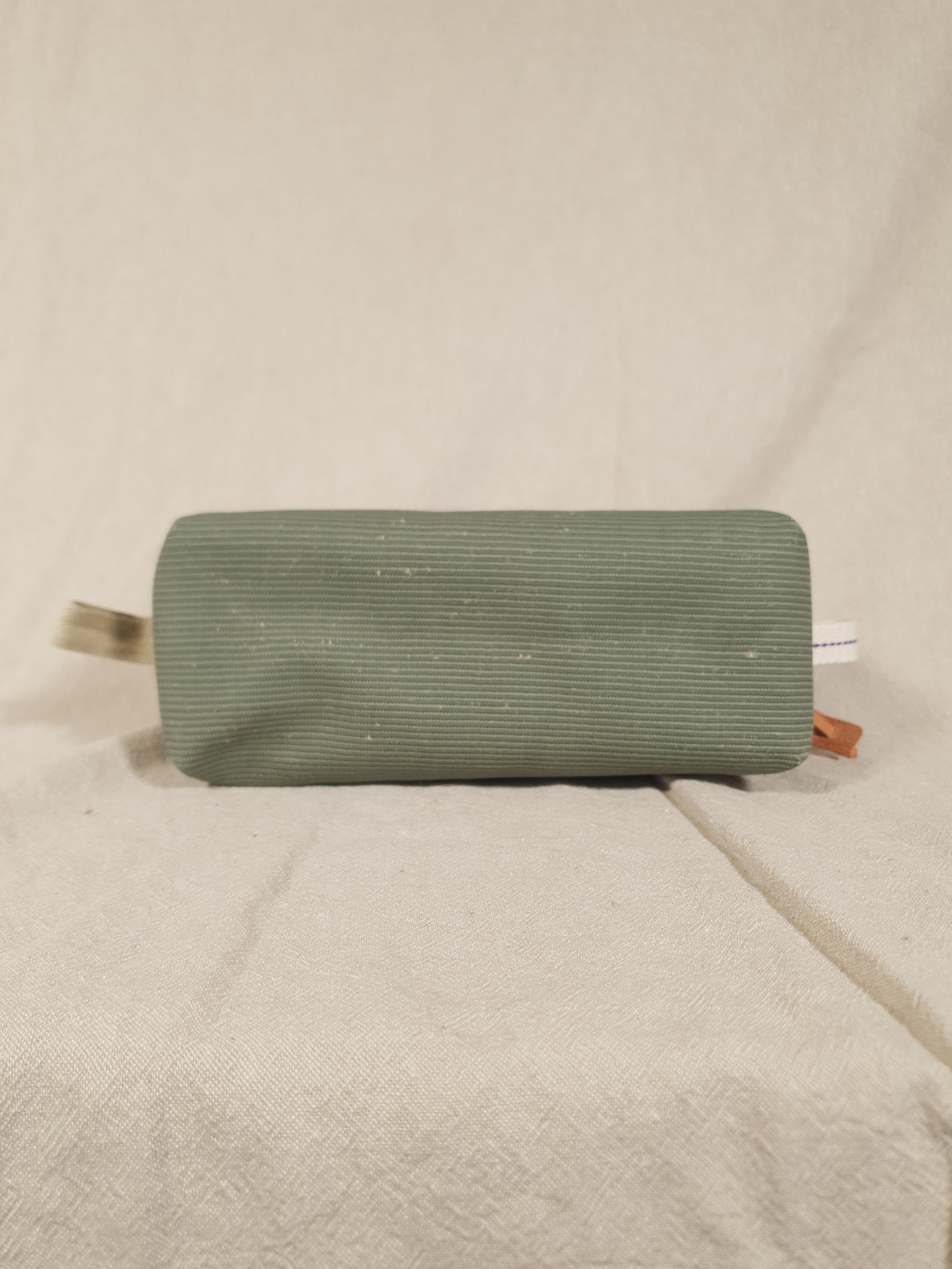 Da das Etui zu einem grossen Teil aus recycelten Materialien besteht sind Spuren des „Vorlebens“ nicht auszuschliessen; unseres Erachtens sind sie sogar gewünscht: Teilweise weist der Stoff kleine Löcher von früheren Nähten auf, in seltenen Fällen ist er etwas fleckig, geflickt. All dies beeinträchtigt jedoch in keiner Weise die Funktion.